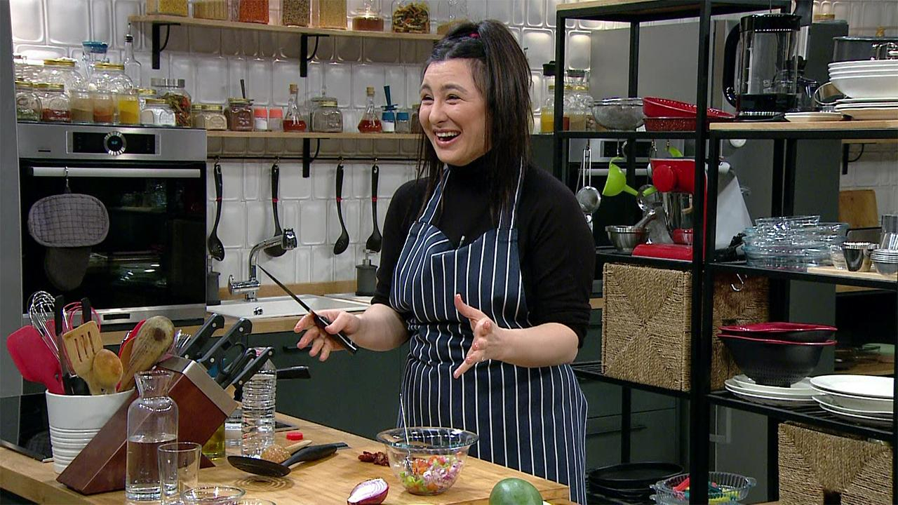 Ünlü şef bu hafta, yarattığı tiplemelerle sosyal medyada büyük başarı elde eden Yasemin Sakallıoğlu’nu konuk ediyor. Türkmen’in sesli şekilde vereceği direktifleri uygulamaya çalışacak olan Sakallıoğlu "Kionalı Salsalı Karides" yapmaya çalışacak.