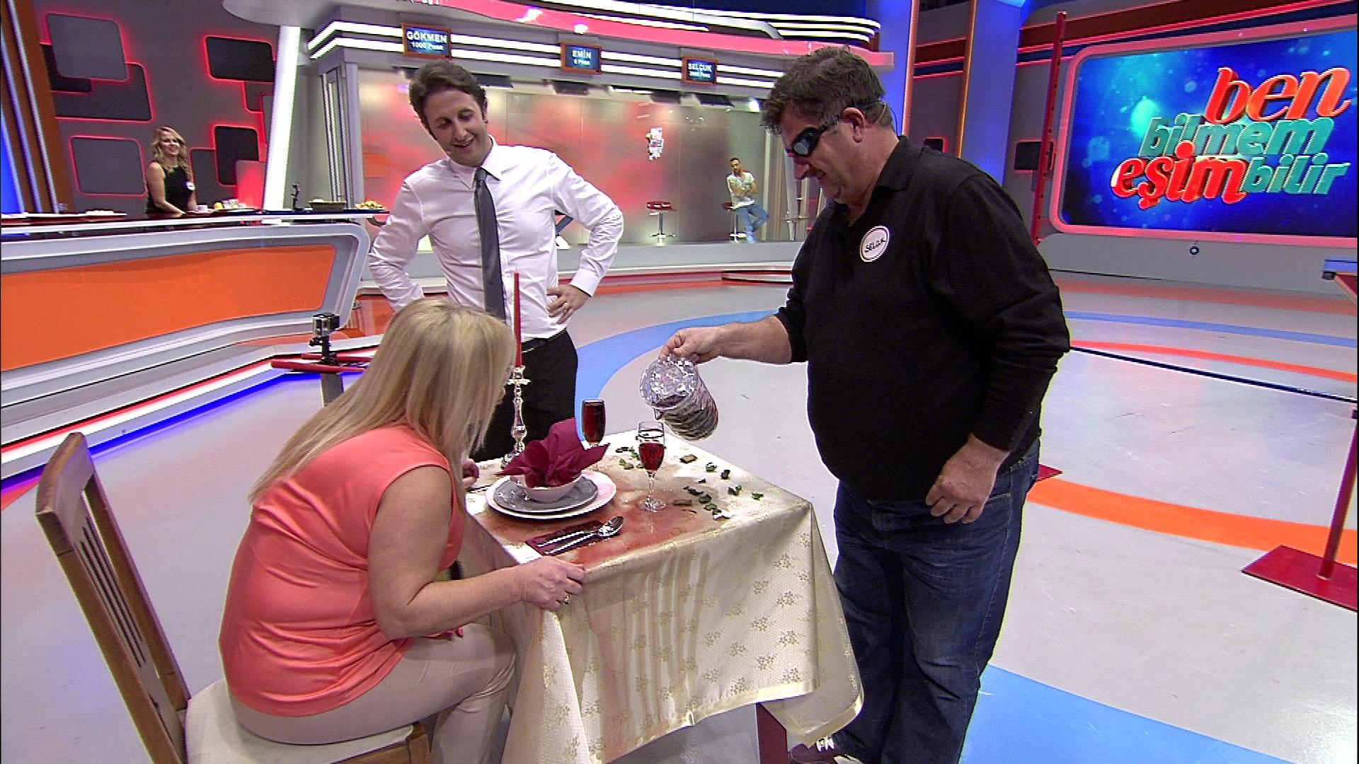 Üçüncü etapta “Aşkın gözü kördür” oyunu oynanacak ve beyler, gözleri kapalı bir şekilde eşlerine en hızlı servisi yapabilmek için ter dökecek.