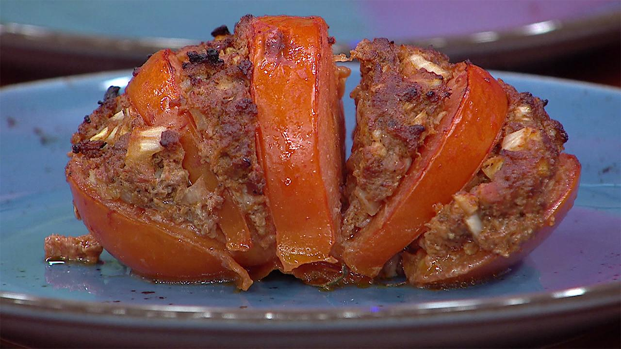 Bir taraftan da domateslerin sap kısmı alta gelecek şekilde dizelim ve üsten tüm kesmemek şartı ile kesikler atalım.