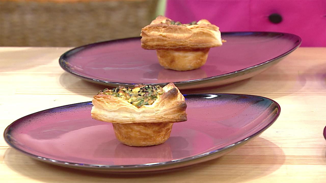 Muffin kabınızı yağlayın. Hafif yumuşayan milföyleri 4 köşesi dışarda kalacak şekilde muffin kalıplarına yerleştirin.