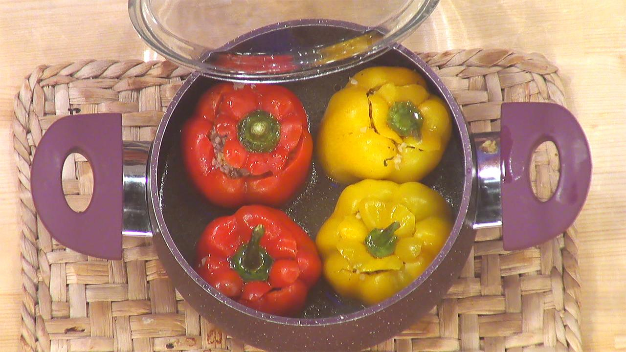 Hazırladığınız iç harcı biberlerin içine paylaştırın.