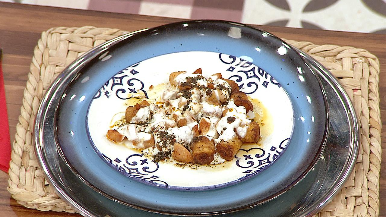 Yufkaları kızgın yağda altın sarısı rengini alana kadar kızartın. Bir tabağa kızarmış yufkaları alın ve üzerine çırpılmış yoğurt ve sotelenmiş tavukları ekleyin.