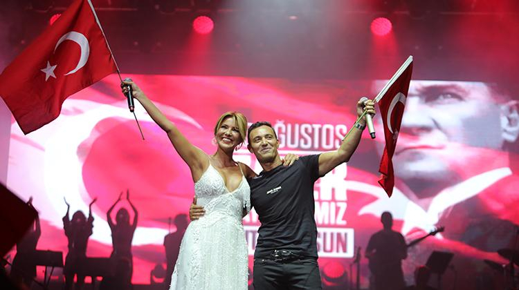 Konserin sürprizi ise Gülben Ergen oldu. İlk yarının bitiminde ‘Şıkır Şıkır’ şarkısını seslendiren Sandal’ın sahnesine Ergen konuk oldu ve muhteşem bir düete imza attılar. 30 Ağustos Zafer Bayramını bir gün öncesinden kutlayan ikili Türk bayraklarıyla Harbiye’yi kırmızı-beyaza boyadı.